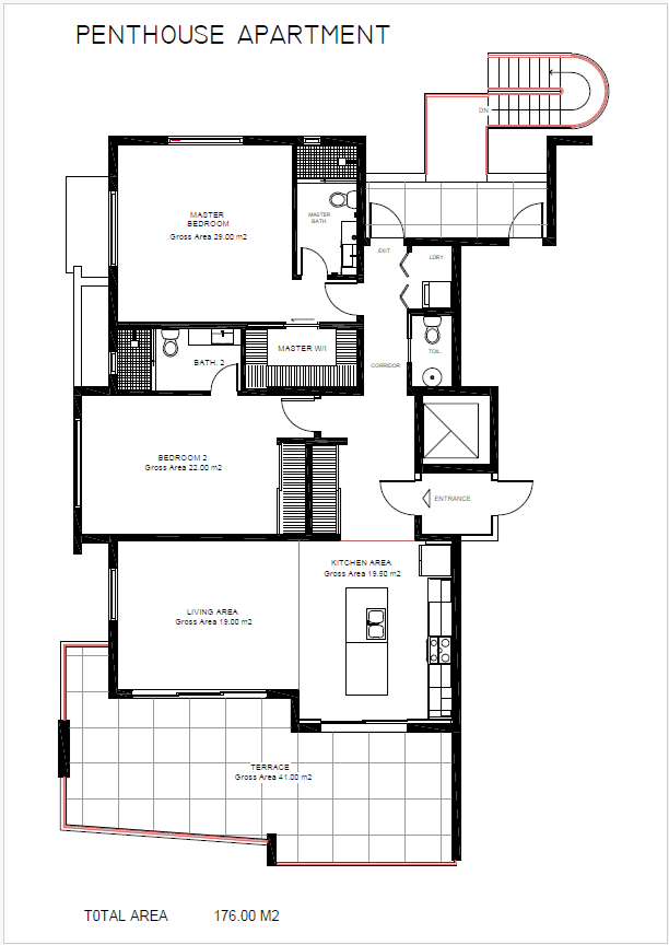 Penthouse – 2 Bedroom Apartment featuring spacious 400 sq ft terrace.