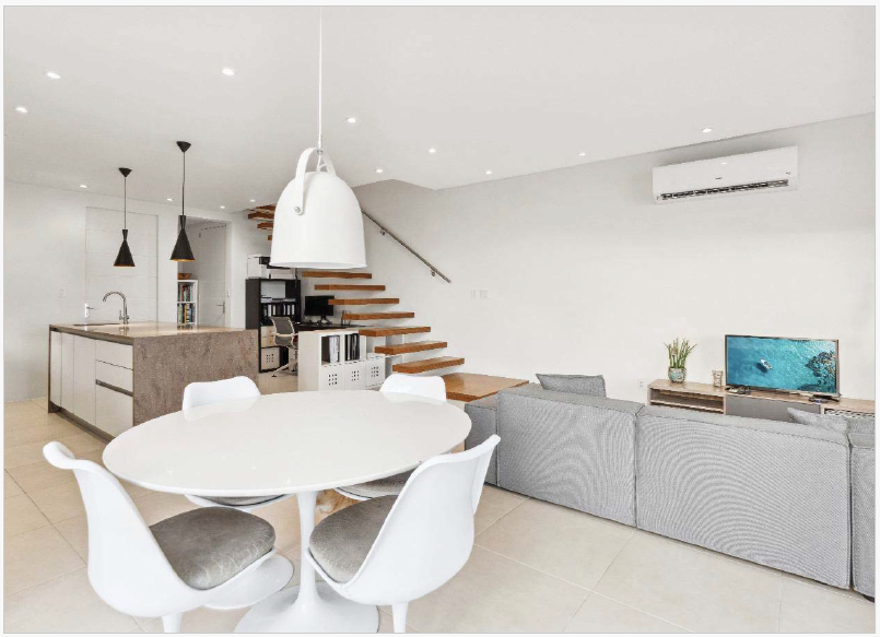 The home features a functional layout with an open-concept living and dining area, allowing for natural light and cool breezes to flow throughout. The semi-furnished interior includes essential appliances and select furnishings, making it easy to move in and personalize the space to your taste.