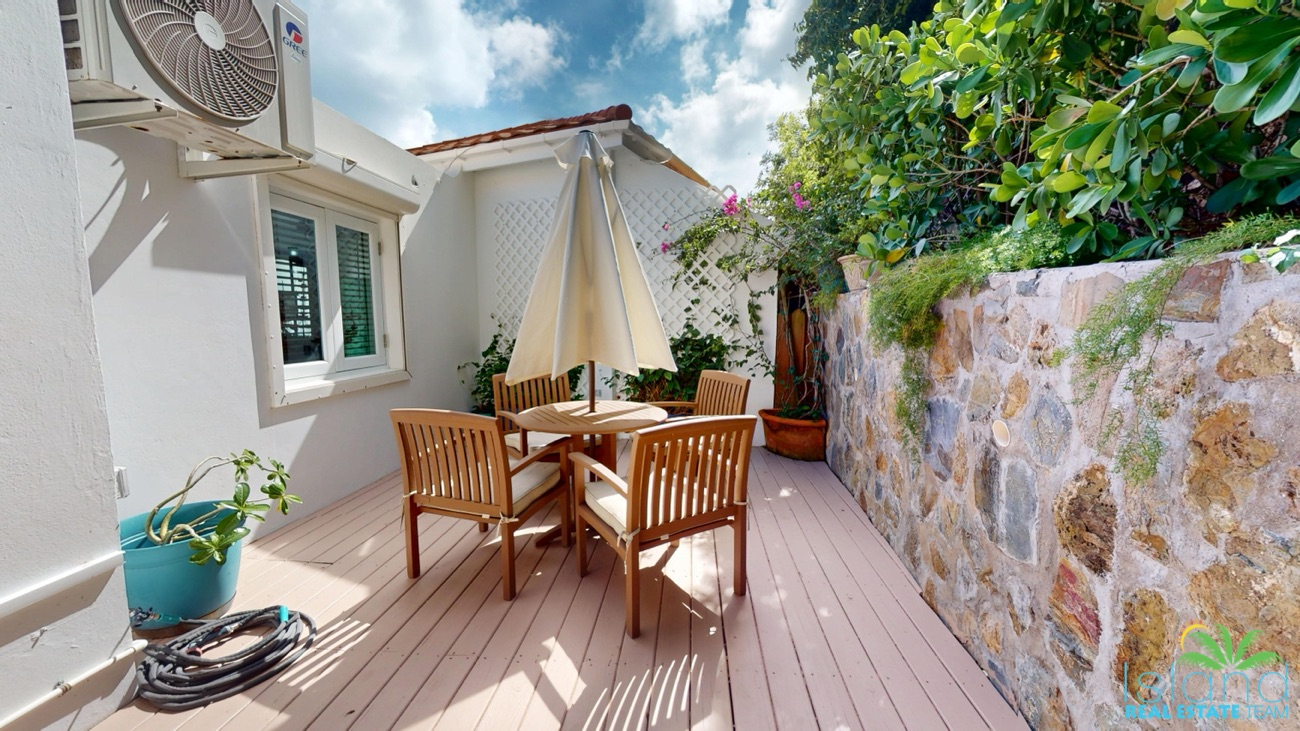 Multiple terraces and verandas provide stunning panoramic views of the beach, turquoise waters, and the island of St. Barths. Enjoy the serenity of the flowering mountain garden deck, accessible from the living room’s French doors, complete with a private Jacuzzi for four.